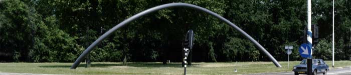 Weymouth Relief Road from an artist's point of viewfrom road to roadPublic art varies from wall paintings, via sculpture, to a symbiosis between natural surroundings and art. When art is attuned to its environment it becomes site specific. It can be in harmony with a location or site - but it can also complement it by being different - contrasting it. Depending on its environment it can be dominant or subdominant. Site specific art can only be viewed in real life on the location for which it was made. In most situations site specific art is static. To see and undergo it, one must move around it enter it or occupy it. Undergoing art is done in confrontation. In many cases this takes place in the home, a gallery, museum or in the public space. And in most cases one is on foot. The factor time plays a role when one moves around a work of art - the time it takes to explore it, but also the time one has to undergo and fully understand it. ![]() But art in the road environment is different in that only a certain span of time has been allotted to the spectator to observe it. He and she move, and must move - move on. And, depending on the distance from where one's vehicle approaches such a work of art, the time is limited to the equation between the distance, speed and time span needed to bridge the gap. We wouldn't install an equestrian statue right next to a country road, let alone next to a motorway. It is therefore an extra challenge for the artist to do something with, to utilize, this dimension of movement. Art which is observed from a moving vehicle necessitates the use of this extra feature. It must be incorporated in art in the road environment. This is what I have been intermittently studying during the course of my experiences in making site specific public art in various situations. I will try to illustrate this on these pages.