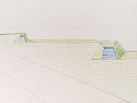 realised projects the A15 proposalsI was one of the three sculptors asked by the National Road and Transport Department of Holland to do a study on the visual effect of art and art on a highway. Highway A15 was the object of the study. In that time of this project - 1983 - this was a very serene highway, peaceful and almost untouched by traffic. The transport department found that the motorists on this highway were more prone to loosing their attention because of the monotony of the long stretch of road than on other thoroughfares. Instead of proposing incidental sculptures in places along the highway - or long, drawn-out artworks alongside the road, I found that comparing this new implementation of art to a score in music would be the only appropriate thing to do. The moving observer should witness the events when they happened. I submitted various suggestions, using materials and natural elements from the surroundings, as to how this could be done on a scale which matches that of a highway in a landscape. The thumbnails below, when clicked, will show larger images with information about the proposals for environmental sculptures, land art projects and site specific sculptures.