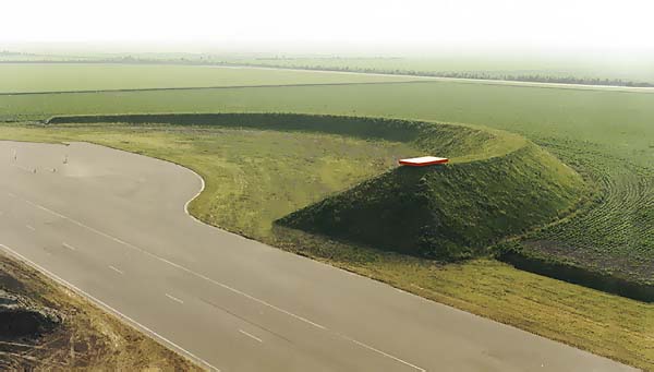1985|1986 land art project with red steel element - 100x200x7.50m - test circuit and test center of the national Road and Transport Department of The Netherlands - Lelystad NL (the work has been demolished in the early nineties). |